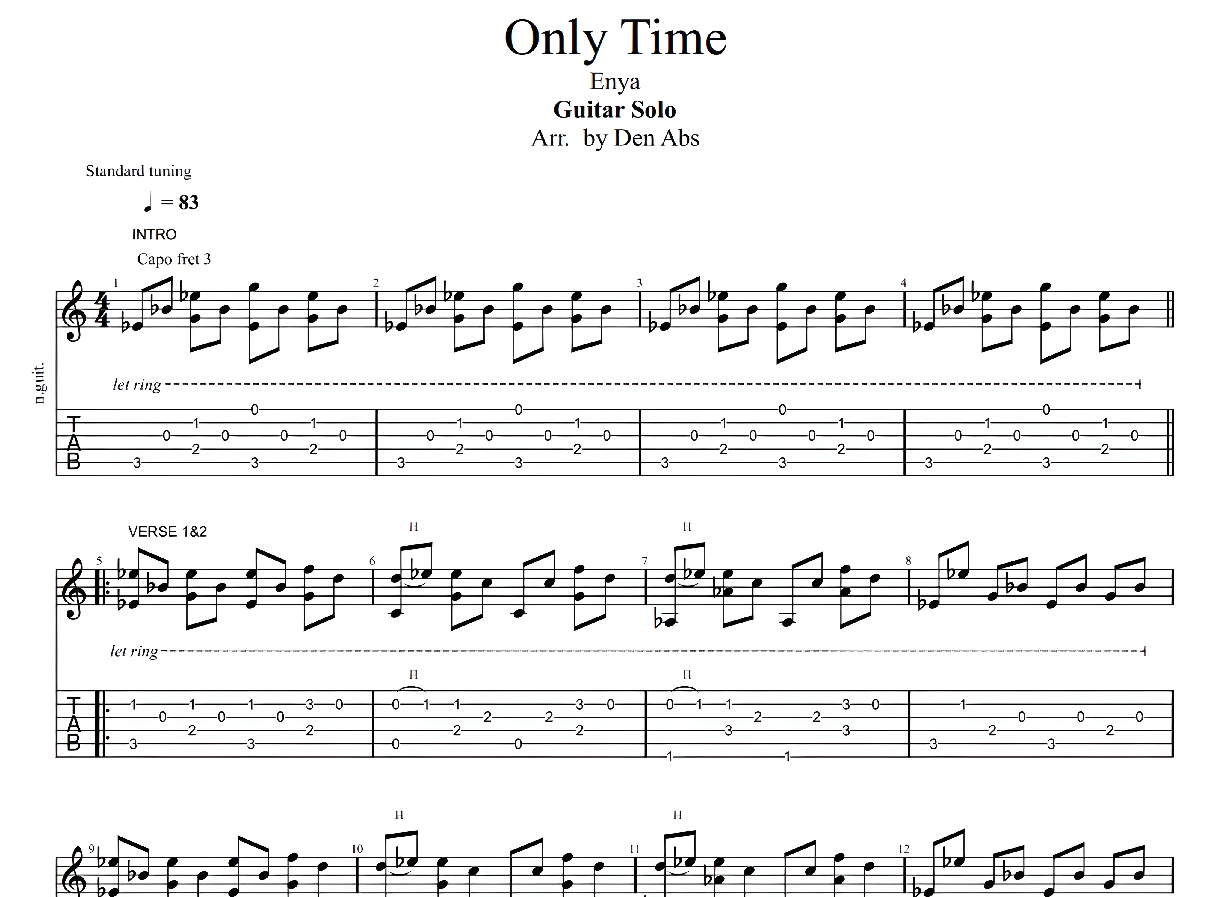 Only Time by Enya - Guitar Solo Tab